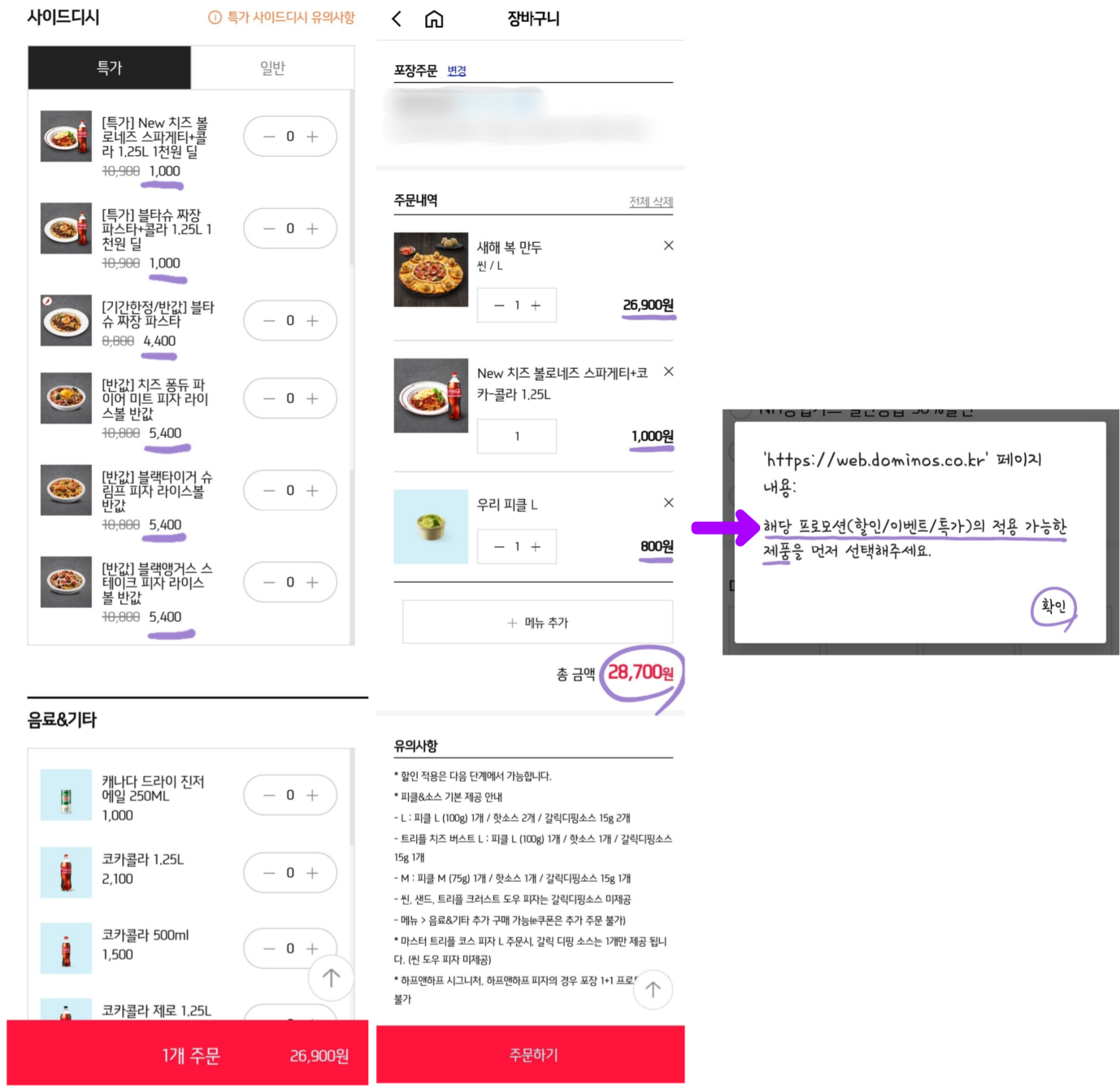제가 주문할 당시 도미노피자에서 사이드디시를 반 값 이상 할인해주는 행사도 동시에 진행되고 있었어요.