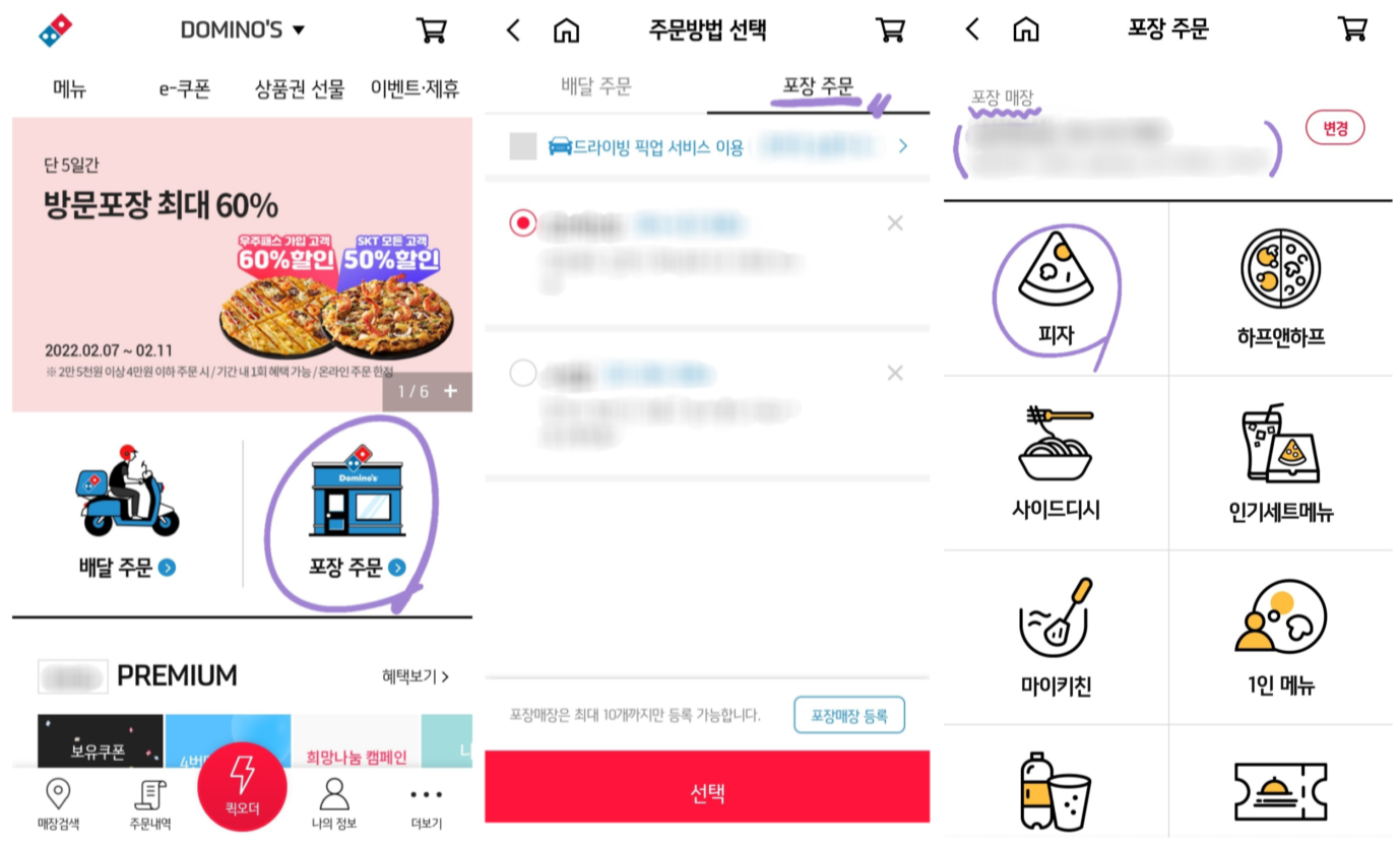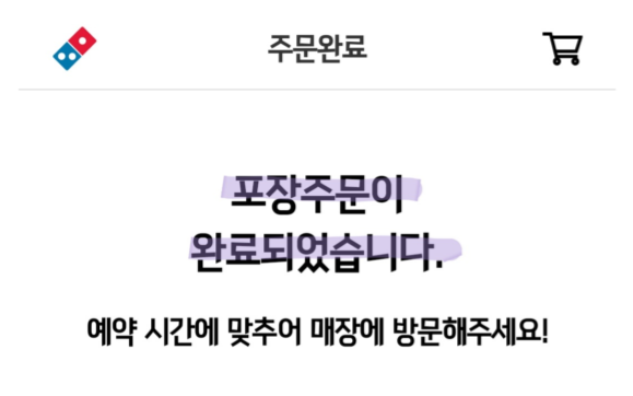 결제까지 다하면 포장 주문이 완료되었다는 창과 함께 피자를 픽업하러 매장으로 가시면 됩니다.